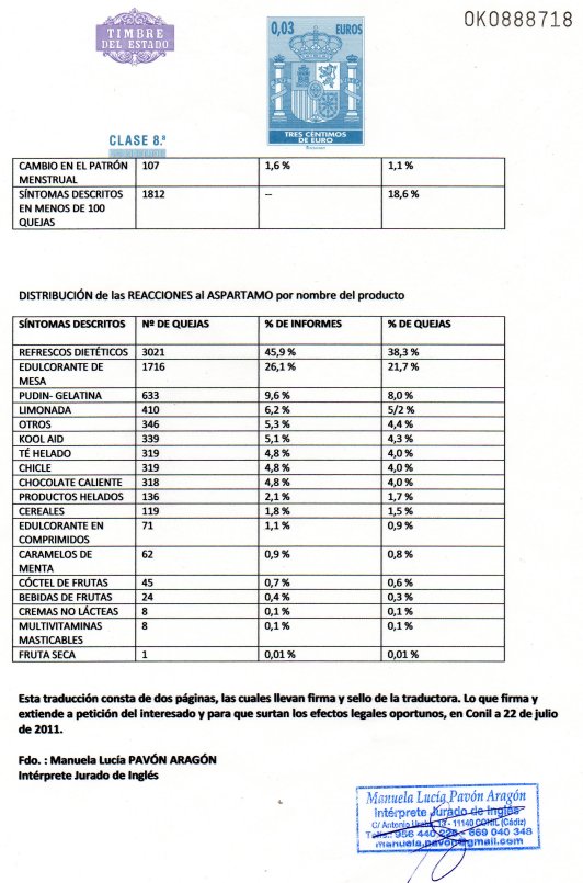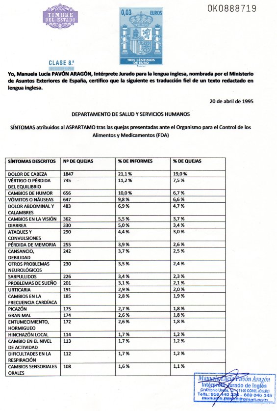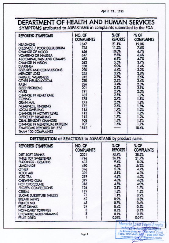 SYMPTOMS ATTRIBUTED TO ASPARTAME IN COMPLAINTS