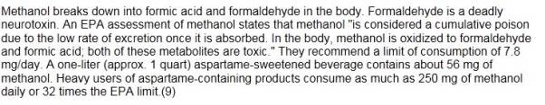 NOTE: The fact that fruits and vegetables in nature deliver more methanol than aspartame is totally irrelevant.