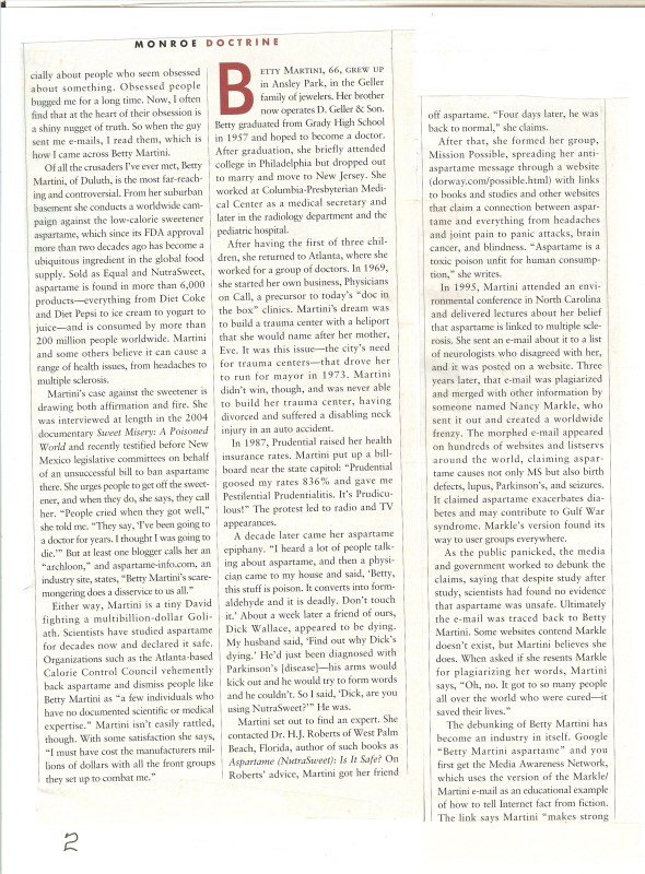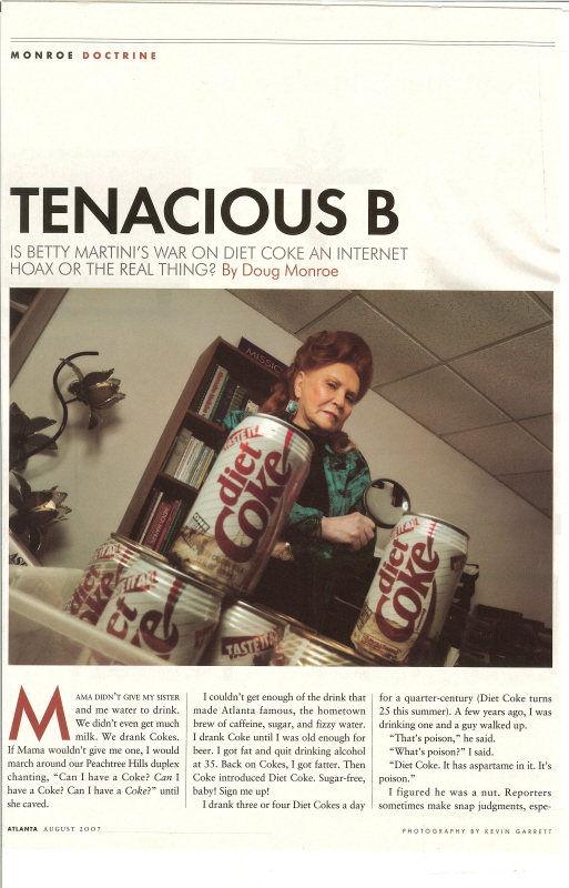 TENACIOUS B: IS BETTY MARTINI'S WAR ON DIET COKE AN INTERNET HOAX OR THE REAL THING?